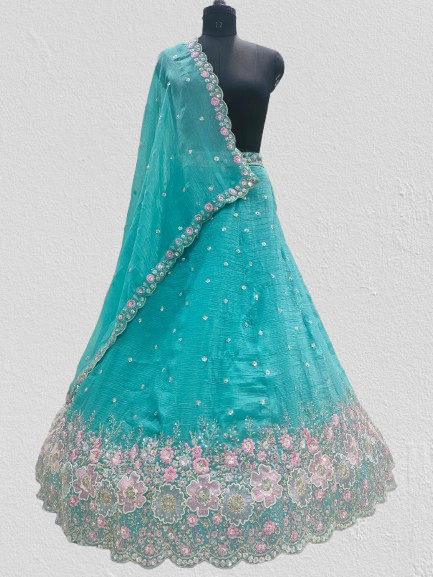 Emerald Green Golden Zari Embroidered Lehenga Set