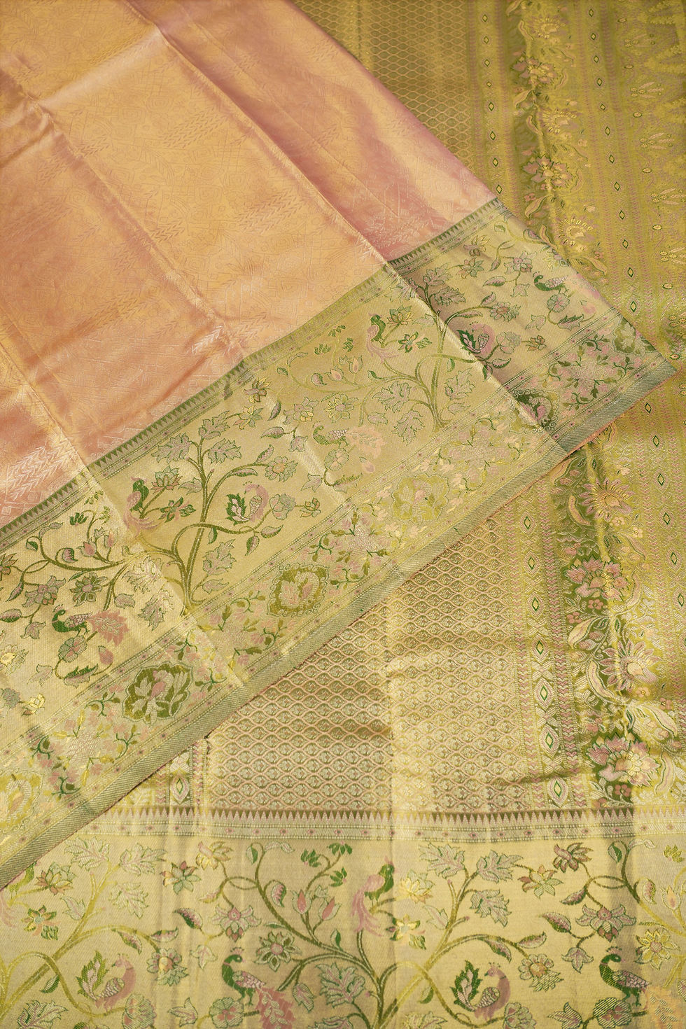 Light Peach Kanchipuram Silk Saree with Green Zari Border